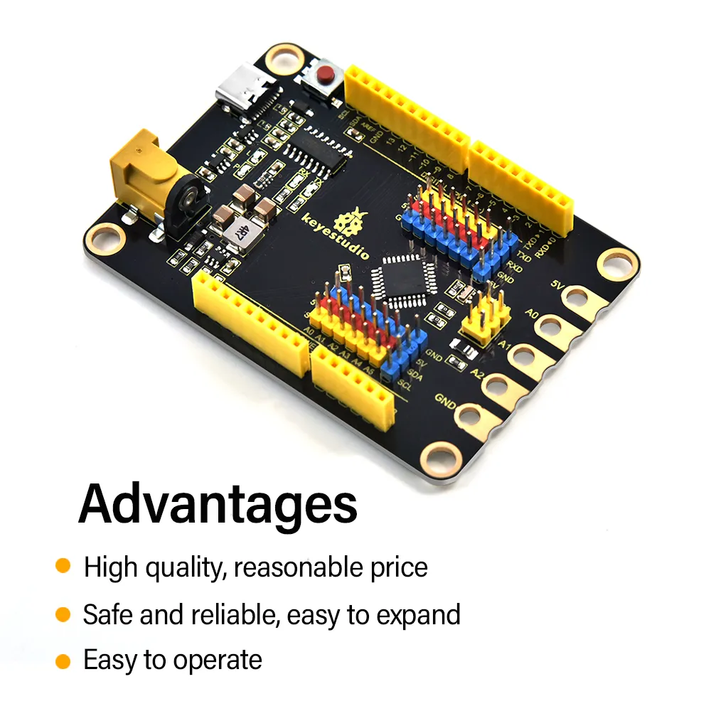 Carte de développement microcontrôleur compatible Arduino UNO R3, entièrement programmable avec l’Arduino IDE. Elle offre toutes les fonctionnalités d’une carte UNO classique avec des améliorations, est compatible avec des briques LEGO pour des projets DIY et inclut un câble USB-C pour la connexion. Idéale pour apprendre l’électronique, créer des prototypes ou intégrer dans des projets éducatifs et maker.